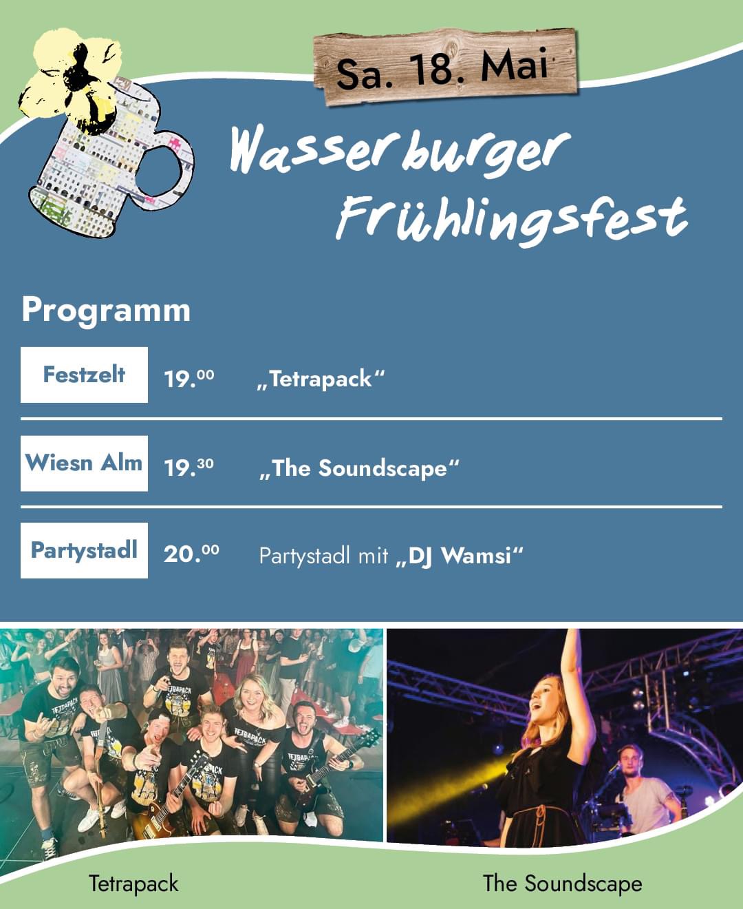 „Soundscape" und „Tetrapack" spielen am heutigen Samstag auf dem Wasserburger Frühlingsfest
