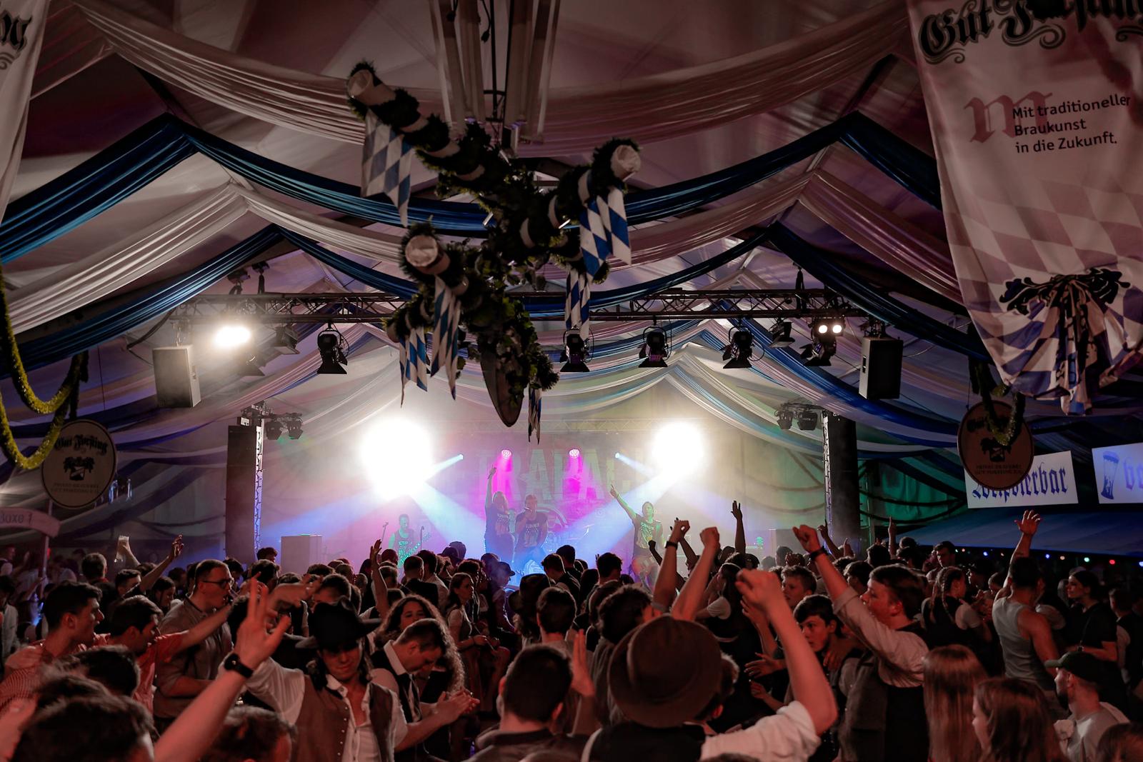 Der Endspurt beim Wasserburger Frühlingsfest, das noch bis zum morgigen Pfingstmontag dauert, wurde gestern Abend perfekt eingeläutet. Sowohl das Festzelt als auch die Wiesn-Alm platzen aus allen Nähten und es herrschte geradezu ein Party-Beben. Den gestrigen Abend mit „Soundscape“ in der Wiesn-Alm und „Tetrapack“ im Forstinger Festzelt hielt unser Fotograf Stefan Pfuhl in Bildern fest: