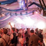 Die Wasserburger Tennisteams Herren 30 und Herren 40 um DJ Wamsi (vierter von links) genossen gemeinsam die gute Stimmung und tolle Atmosphäre am Wasserburger Frühlingsfest.