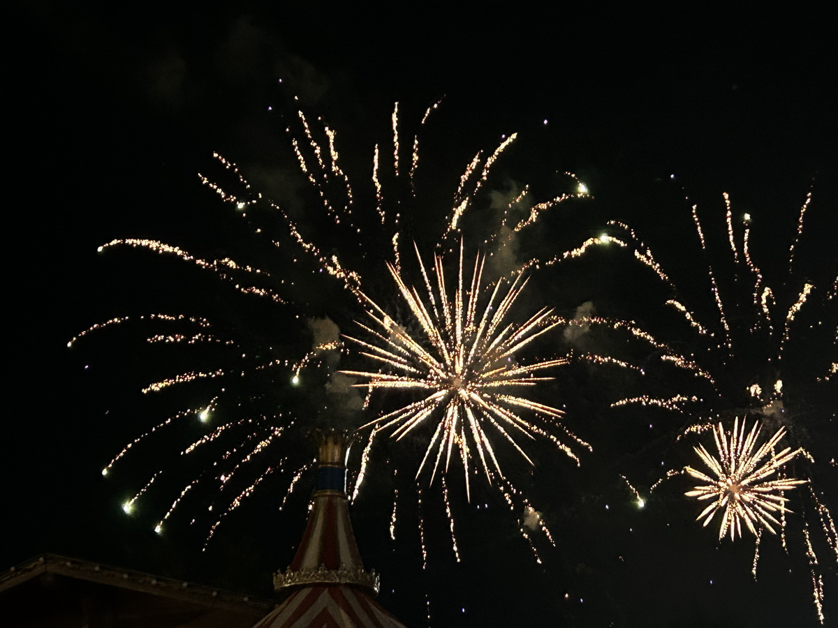 Gegen 22 Uhr erlebten die Anwesenden dann das Highlight des Abends: Der Pyrotechniker gab im wahrsten Sinne des Wortes den Startschuss für ein prächtiges Schauspiel. Farbenfrohe Explosionen erleuchteten den Nachthimmel. Das spektakuläre Feuerwerk begann mit einer Serie von goldenen Funkenregen, die langsam vom Himmel herabfielen und die Menge in Staunen versetzten. Dann folgten kräftige rote und grüne Leuchtkugeln, die in verschiedenen Mustern explodierten und den Himmel in ein Meer aus Farben tauchten.