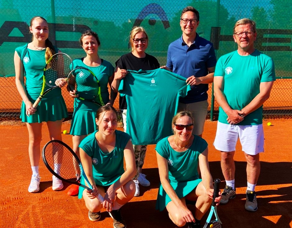 Fesch, fesch – die Tennis-Sportler im TSV Eiselfing: Die Sparkasse Wasserburg hat jetzt die Abteilung beim Kauf der neuen Dressen der Damen und Herren kräftig unterstützt. Ein großes Dankeschön dafür …