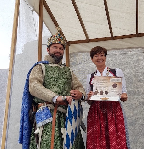 Zur Eröffnung des Mittelalterspektakels (wir berichteten) überreichte König Ludwig (Matthias Ettinger des Kultur-Vereins „Zwoarazwanzger“ aus Ampfing) das Marktrecht an Bürgermeisterin Sissi Schätz. Die Repliken können bei den Schlossturmführungen sowie bei Hut Knittlberger und Bike Service Gruber in Haag zum Selbstkostenpreis von fünf Euro erworben werden.