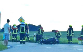Feuerwehr Schonstett rückt auf die Staatsstraße Richtung Halfing aus