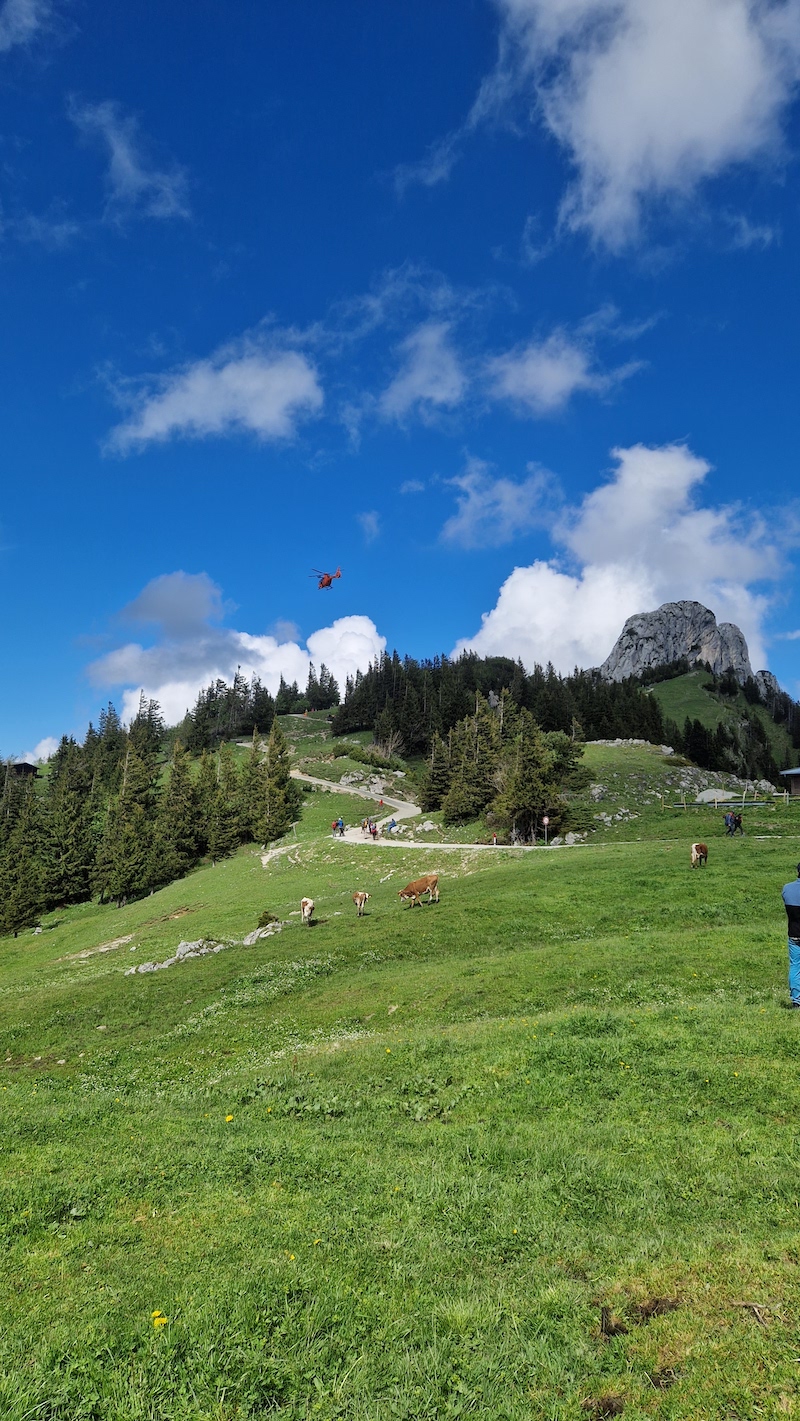 Nach der gemeinsamen medizinischen Versorgung entschied man sich zum schnellen und schonenden Abtransport für eine Bergung mit dem Rettungshubschrauber. Der hinzugerufene Rettungshubschrauber Christoph 14 aus Traunstein nahm die Patientin im Bergesack verpackt mit der Winde auf und flog sie zur weiteren Versorgung ins Klinikum Rosenheim.