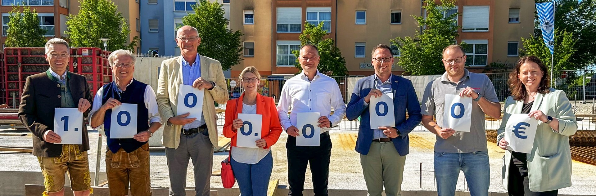 Strahlende Gesichter jetzt auf der Großbaustelle der Johanniter in Wasserburg: Alle freuen sich gemeinsam mit den Johannitern über einen wichtigen Schritt auf dem Weg zum neuen Johanniter-Zentrum Oberbayern Südost. Von den rund 3,2 Millionen Euro Spenden, die noch für den Bau benötigt werden sind bis jetzt eine Million Euro zusammengekommen.