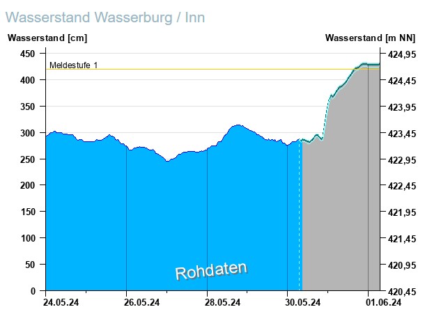 Der Inn könnte morgen oder am Samstag die erste Meldestufe erreichen