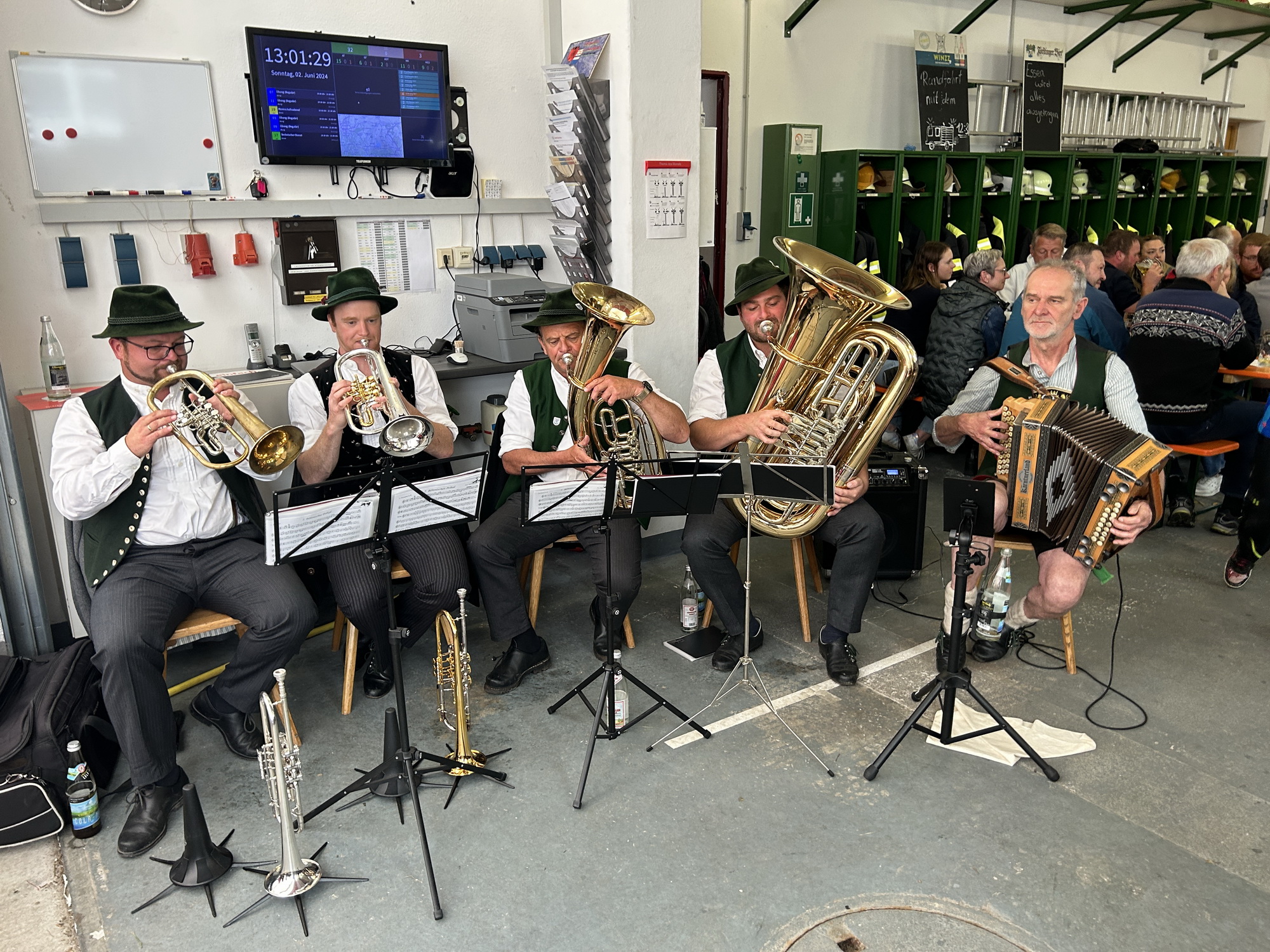 Für die musikalische Untermalung sorgte die „Ameranger Blechmettn“, die mit ihrem vielfältigen Repertoire die Gäste bestens unterhielt. Ein besonderes Highlight für die jüngsten Besucher waren die aufregenden Fahrten mit dem Feuerwehrauto. Die Kinder durften sogar das Martinshorn testen und das Fahrzeug ausgiebig von innen und außen erkunden, was für leuchtende Augen und viel Freude sorgte.