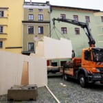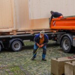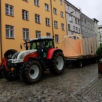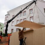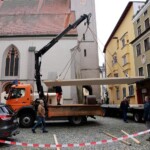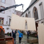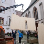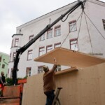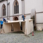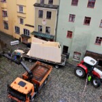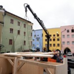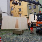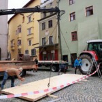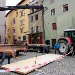 Teil der Bühne fürs Bürgerspiel in der Frauengasse eingetroffen
