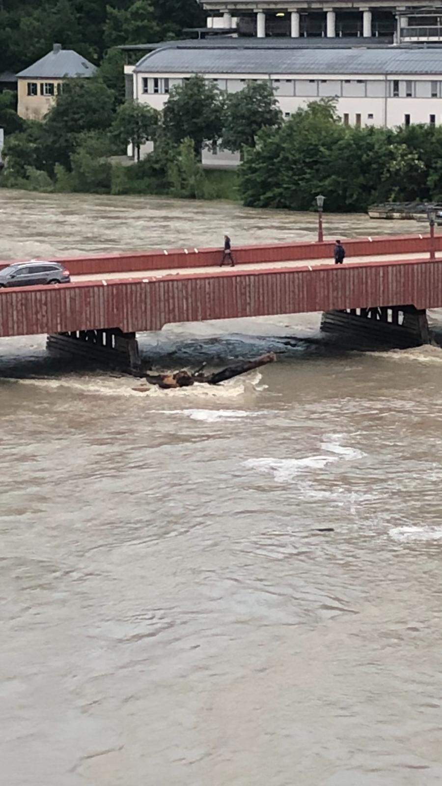 Erste Entwarnung für die Stadt Wasserburg: Der Pegel sinkt. Wie prognostiziert, wurde die Meldestufe 3 (5,50 Meter), nicht erreicht, allerdings auch nur minimal verfehlt. Um 4 Uhr morgens stand das Wasser bei 5,49 Metern. Seitdem sinkt der Wasserstand kontinuierlich. Aktuell (6 Uhr morgens) steht der Inn bei 5,32 Metern. Bis zum Abend soll er unter die Meldestufe 1 (4 Meter) sinken. Foto von heute Morgen: GH