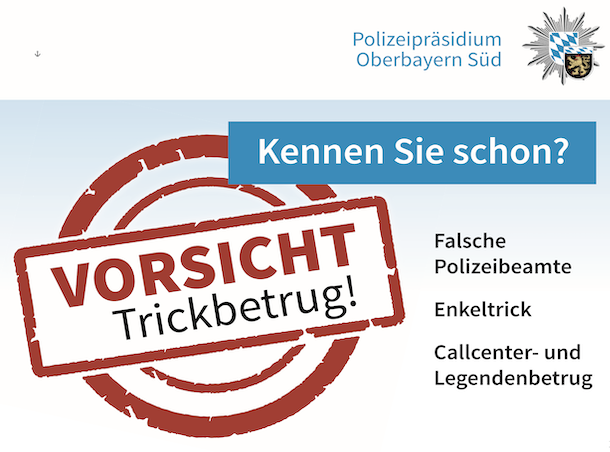 Die Gemeinde Edling lädt ein zum Vortragsnachmittag „Vorsicht: Callcenter-Betrug! Schockanrufe, Trick- und Legendenbetrug, Enkeltrick, Messengerbetrug“. Der kriminalpolizeiliche Fachberater für Stadt und Landkreis Rosenheim klärt auf über die aktuellen Maschen der Betrügeram Donnerstag, 20. Juni, um 14.30 Uhr in Edling im Krippnerhaus auf.