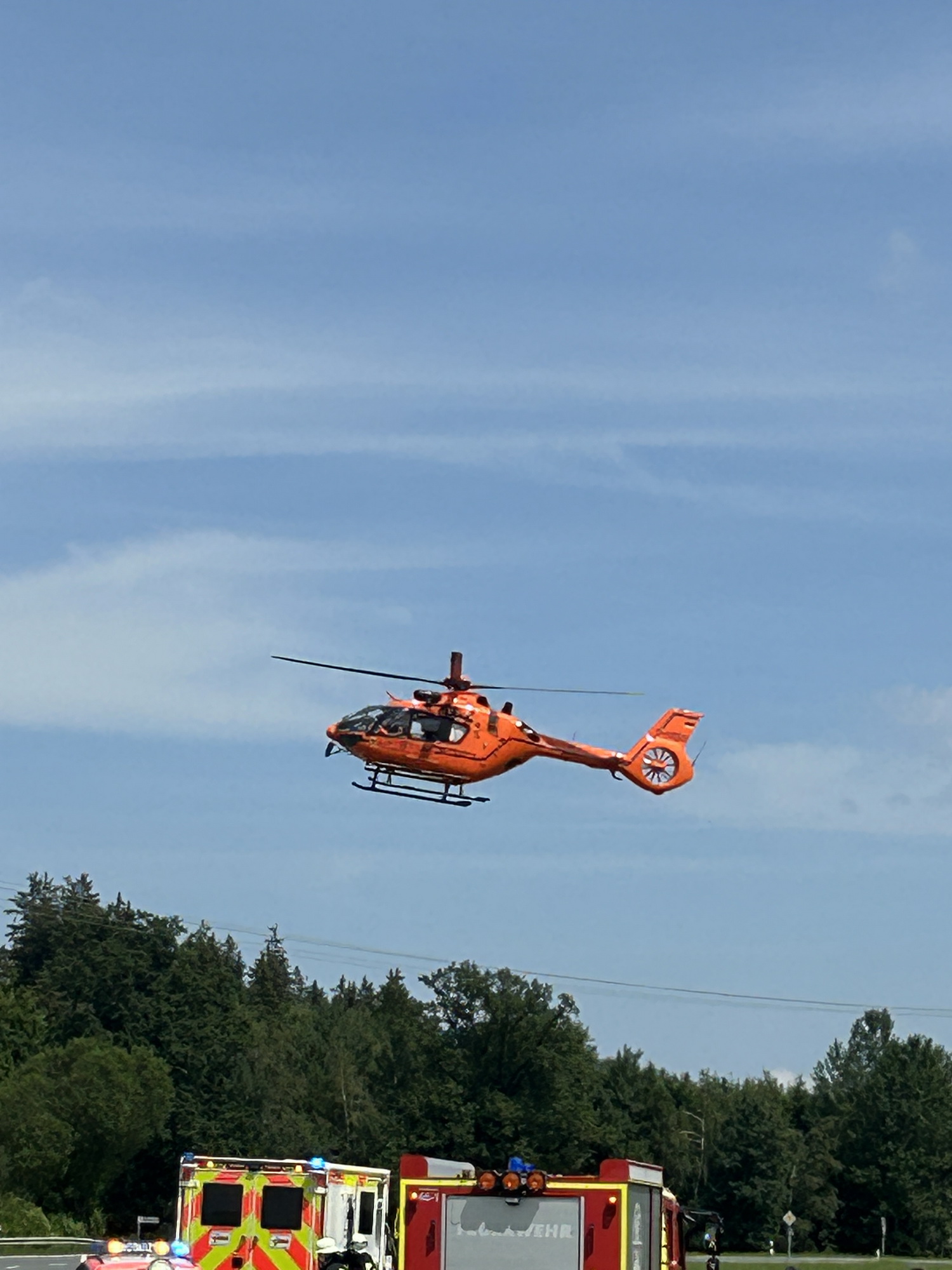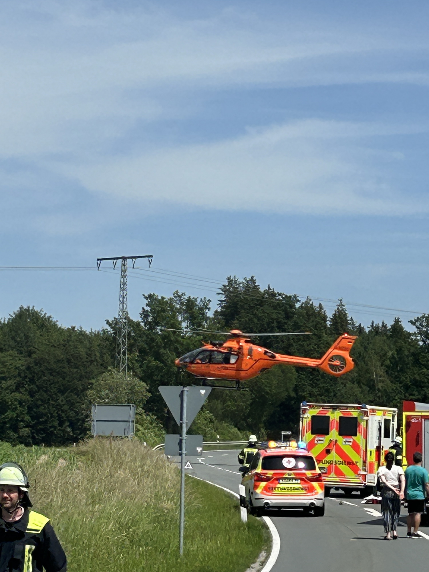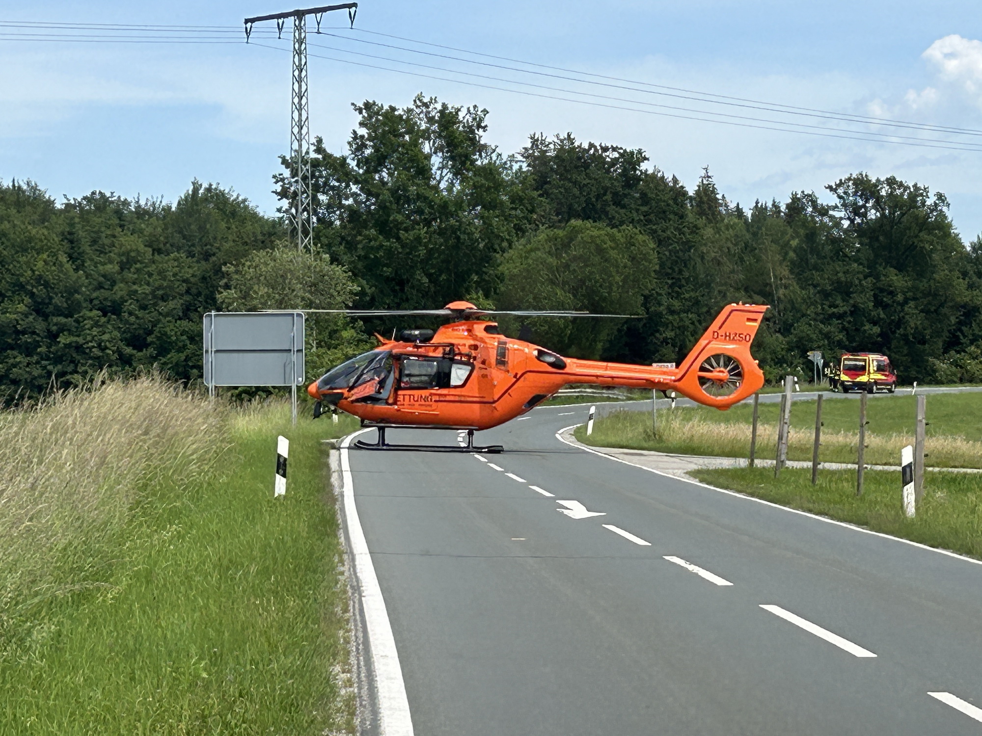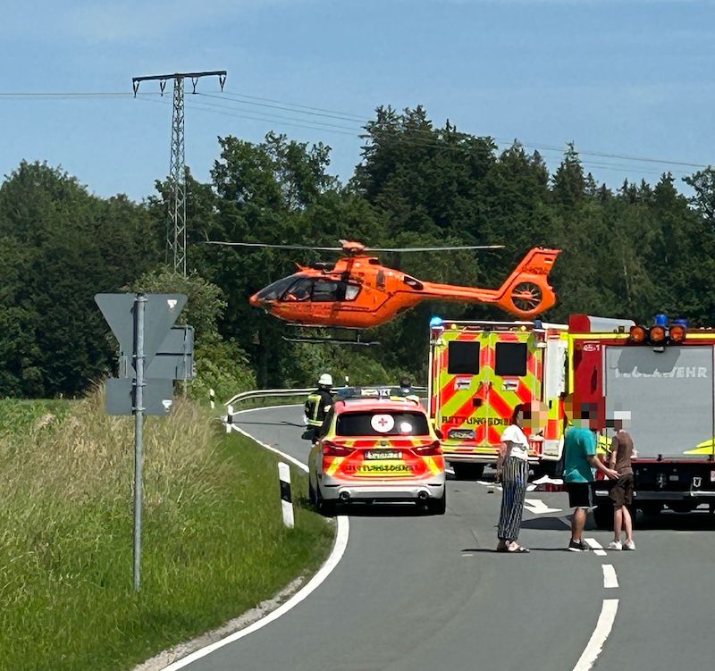 Zweiradfahrer bei Evenhausen verunglückt - Feuerwehr und Rettungsdienst im Einsatz - Hubschrauber landet