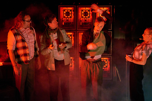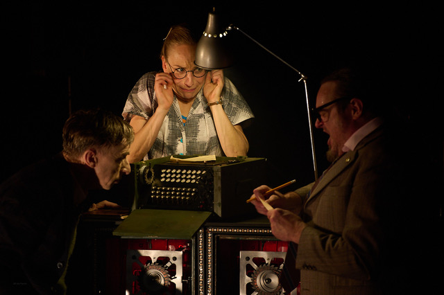 Dieser Theaterabend war in seiner Vielschichtigkeit und seiner breit angelegten Thematik faszinierend vom ersten bis zum letzten Augenblick. Vier Zeitpunkte haben Christian Heiß und Thorsten Krohn, die gemeinsam Regie führten, zum Thema gemacht: 1939, dem Ausbruch des Zweiten Weltkrieges, wo ehemalige Nachbarn zu Feinden wurden, 1942, als Turing die Chiffriermaschine Enigma entschlüsseln konnte, 1952, als er sich der Hormontherapie gegen seine Homosexalität unterzog und 1954, als er seinem Leben ein Ende setzte.