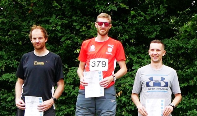 Der U14- und U12-Trainer beim TSV Wasserburg – Marinus Zimmer (Bildmitte) – holte sich im Hochsprung den Meistertitel der M35. Mit übersprungenen 1,71 m im Schersprung lag er drei Zentimeter vor Sebastian Berger von den Stadtwerken München und war der Beste ganz Bayerns. Danach musste er leider den Wettkampf abbrechen, weil er immer noch Probleme am Sprungfuß hat.
