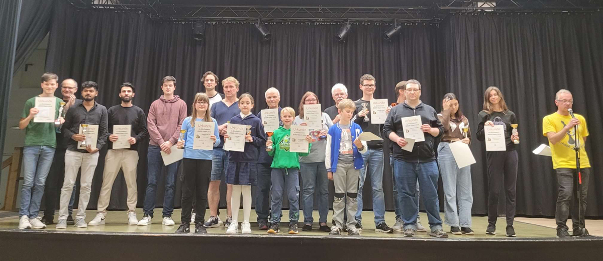 Im A-Open gingen drei Kontrahenten punktgleich mit 4,5 Zählern über die Ziellinie. Zwei waren nicht nur punktgleich, sondern auch wertungsgleich. Maran K. Senthil, einer der sprichwörtlich starken indischen Schachspieler, die der heimischen Konkurrenz das Fürchten lehren, trat zusammen mit Luca Englert, VfB Schach Leipzig, auf den höchsten Podestplatz. Großmeister Oleg Korneev, TSV Schönaich (Baden-Württemberg), wurde durch die Feinwertung hauchdünn auf den dritten Platz verwiesen. 83 Teilnehmerinnen in dieser Gruppe.