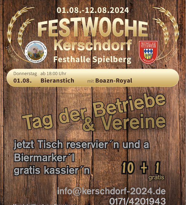 Reservierung unter: info@kerschdorf-2024.de oder unter Telefon 0171/4201943.