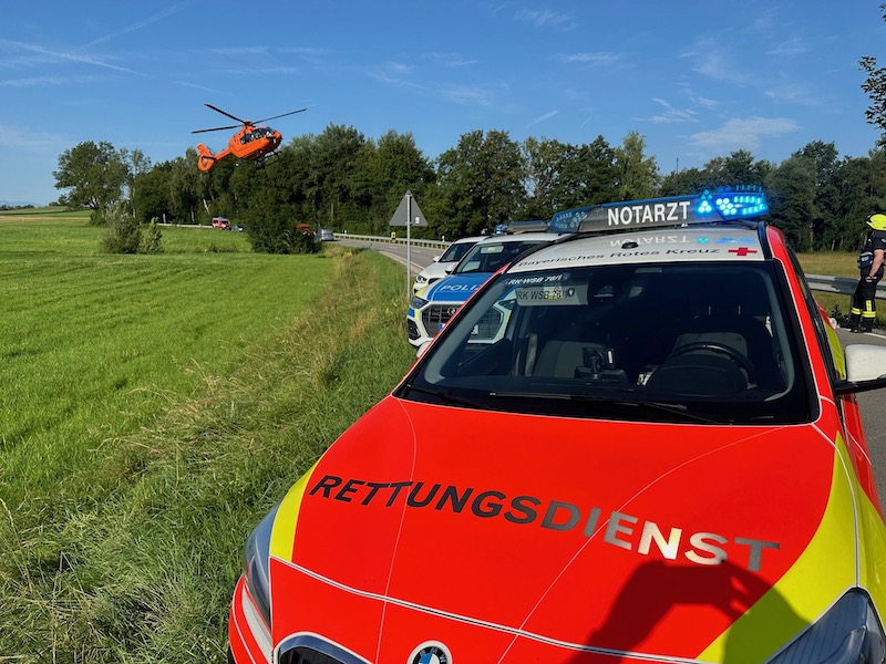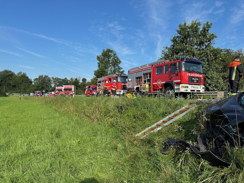 Eine Fahrerin wurde in ihrem Auto eingeklemmt und schwer verletzt, heißt es vom Unfallort. Ein Rettungshubschrauber ist im Einsatz.
