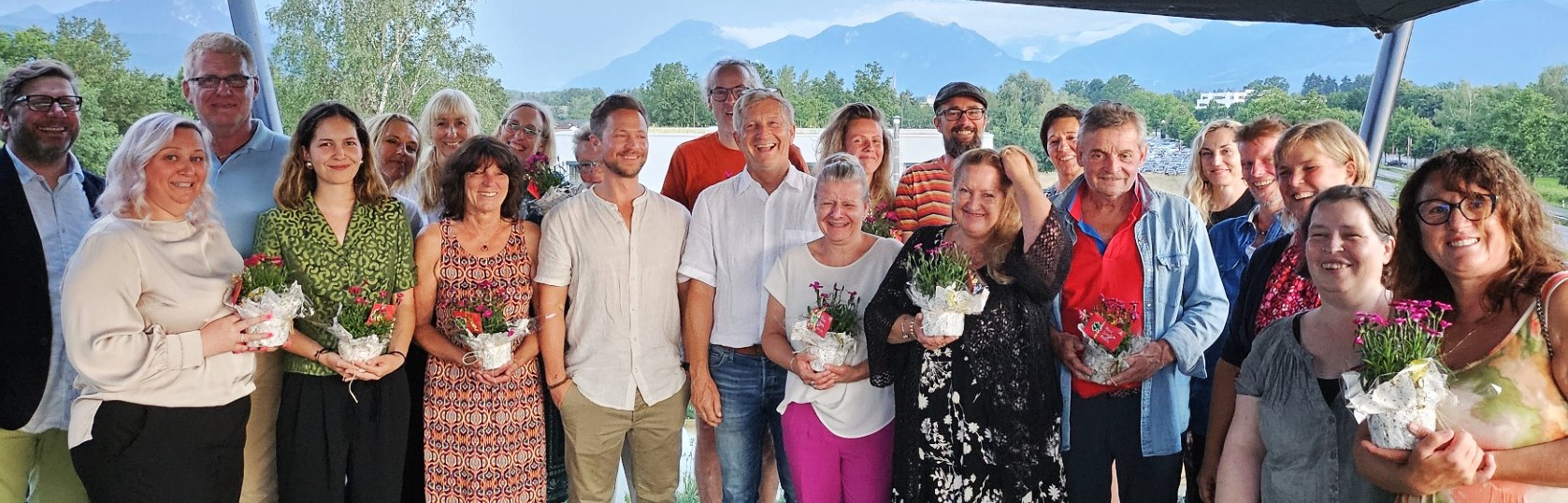 Darum hatte sich das Katholische Jugendsozialwerk e.V. heuer die Rooftop-Bar im My Home – My Hotel in Rosenheim ausgesucht. Vor dem wunderbaren Alpenpanorama trafen sich 17 Jubilare (Foto) gemeinsam mit den Führungskräften des KJSW zum Abendessen.
