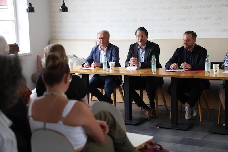 Wernthaler, er ist verheiratet, hat zwei Kinder, begrüßte die Vertreter der Presse im „Cafesito“. Es sei ein besonderer Tag für ihn, sagte der Bürgermeisterkandidat, der zunächst das Wort an Bürgermeister Michael Kölbl (62) weitergab. Der Amtsinhaber erklärte, dass sein Entschluss, nicht mehr anzutreten, bereits kurz nach der letzten Wahl gefallen sei. Daran werde er auch nicht rütteln. „Also war es natürlich irgendwann an der Zeit, einen geeigneten Nachfolger zu finden. Ich habe mir da einige Kandidaten durch den Kopf gehen lassen. Vor ungefähr zwei Jahren haben Bastian Wernthaler und ich dann zueinander gefunden. Es gab seither viele Vieraugengespräche“, so Kölbl. Wernthaler habe schnell Feuer gefangen.