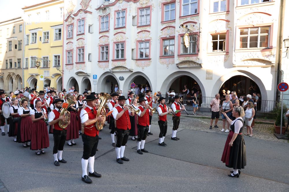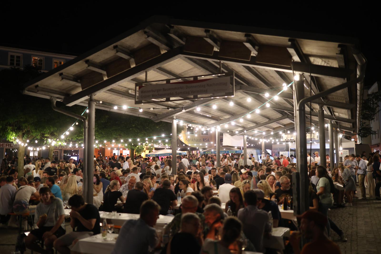 Der Regen kam diesmal erst am frühen Morgen! Nahezu ideale Wetterbedingungen herrschten gestern beim traditionellen Weinfest in Wasserburg Altstadt. Tausende Besucher zog es in die Altstadt, Eröffnet wurde das Weinfest wie immer nach dem Einmarsch der Stadtkapelle durch Bürgermeister Michael Kölbl und den Vorsitzenden des Wirtschafts-Förderungs-Verbandes, Andreas Bonholzer, die den Besuchern vom Rathausbalkon aus zuprosteten. Danach ging es in den Gassen und auf den Plätzen der Stadt hoch her. Fotos: Stefan Pfuhl