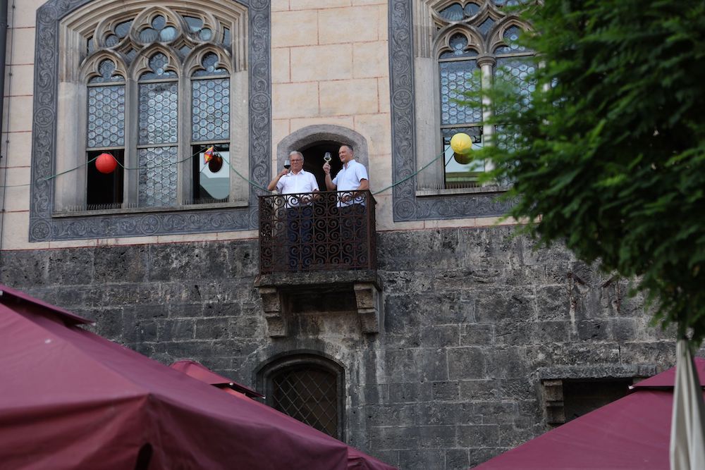 Eröffnung traditionell vor dem Rathaus mit Bürgermeister und Stadtkapelle