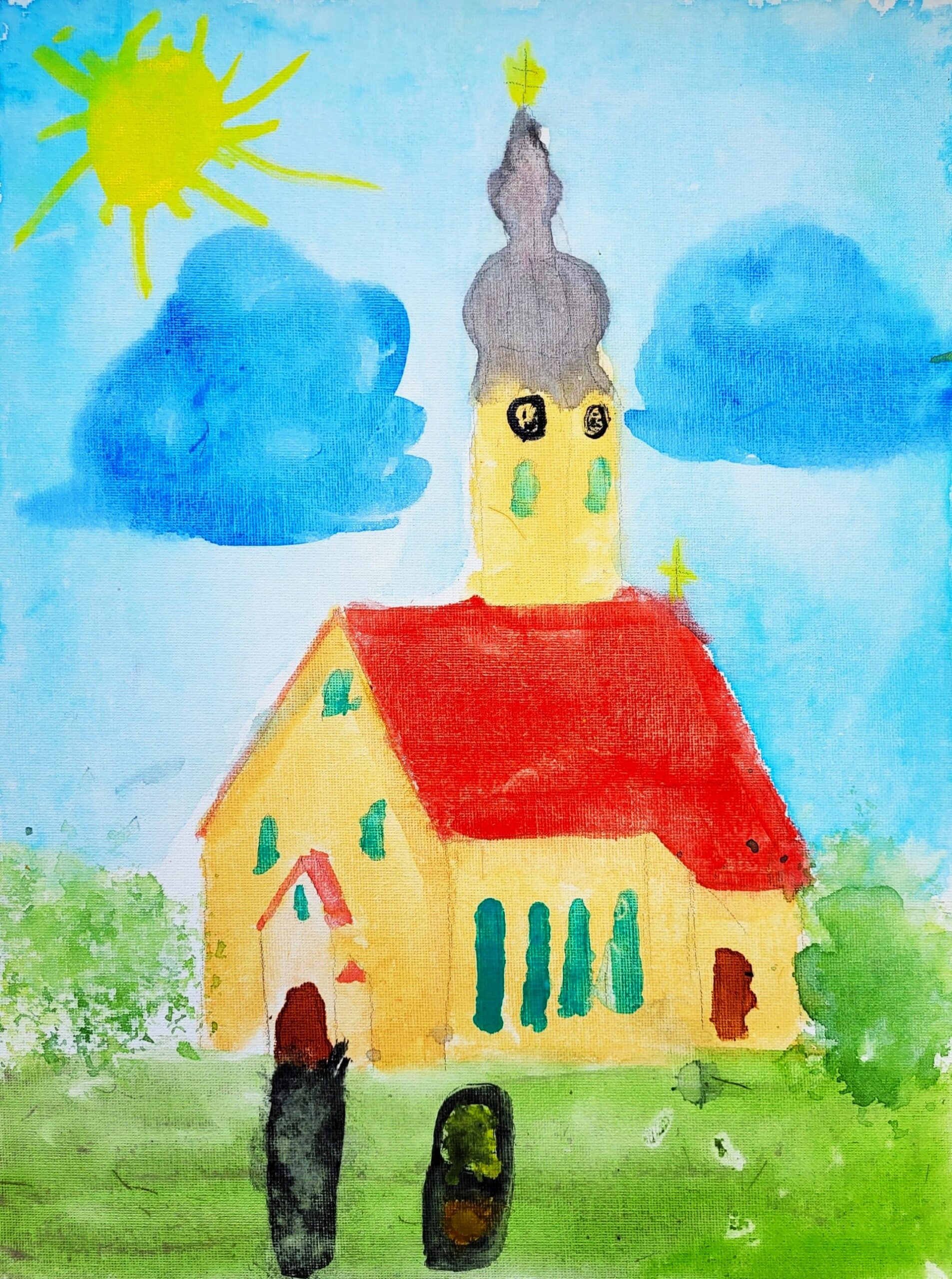 Und von Sophia Seidinger (sechs Jahre) – die Pfarrkirche Sankt Rupertus Eiselfing.