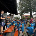 Für das leibliche Wohl war ebenfalls bestens gesorgt. Nudeln und Burger mit Pommes sowie zahlreiche Obst-, Eis- und Trinkpausen sorgten dafür, dass die jungen Fußballer stets gestärkt und erfrischt weitermachen konnten. Nach dem Mittagessen folgte ein spannendes Fußballquiz auf den Stockbahnen im Stil der TV-Show „1, 2 oder 3“, bei dem die Kinder ihr Fußball-Wissen unter Beweis stellen konnten. Jedes Kind erhielt außerdem ein Set aus Trikot und Hose, einen Fußball und eine Trinkflasche als Ausrüstung.