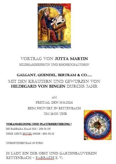 Das Thema des Abends – Eintritt zehn Euro – lautet: Galgant, Quendel, Bertram und Co. Mit den Kräutern und Gewürzen der Hildegard von Bingen durchs Jahr.