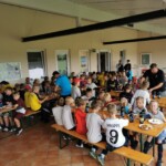 Zum Mittagessen gab es Geschnetzeltes mit Spätzle und Salat, was großen Anklang fand. Am Nachmittag fanden dann zum Abschluss des Tages zwei kleine Turniere für jüngere und ältere Kinderteams statt. Eltern waren eingeladen, das Geschehen zu verfolgen, und einige nutzten die Gelegenheit, um ihre Kinder bei den Spielen anzufeuern. Die Stimmung war ausgelassen und sehr gut, und der Tag klang in einer fröhlichen Atmosphäre aus.
