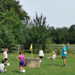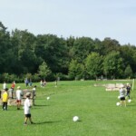 Tag 4: Am letzten Tag des Sommercamps stand ein besonderer Ausflug auf dem Programm: Die Gruppe fuhr zum Soccergolf nach Zorneding. Das Wetter war erneut herrlich, die Sonne schien, und die Kinder freuten sich auf die neue Herausforderung. Die Anreise erfolgte mit einem Reisebus, einem Vereinsbus und drei privaten Autos. Vor Ort wurden die Kinder in Gruppen von jeweils acht Kindern eingeteilt, wobei jeweils ein Trainer als Aufsicht fungierte.