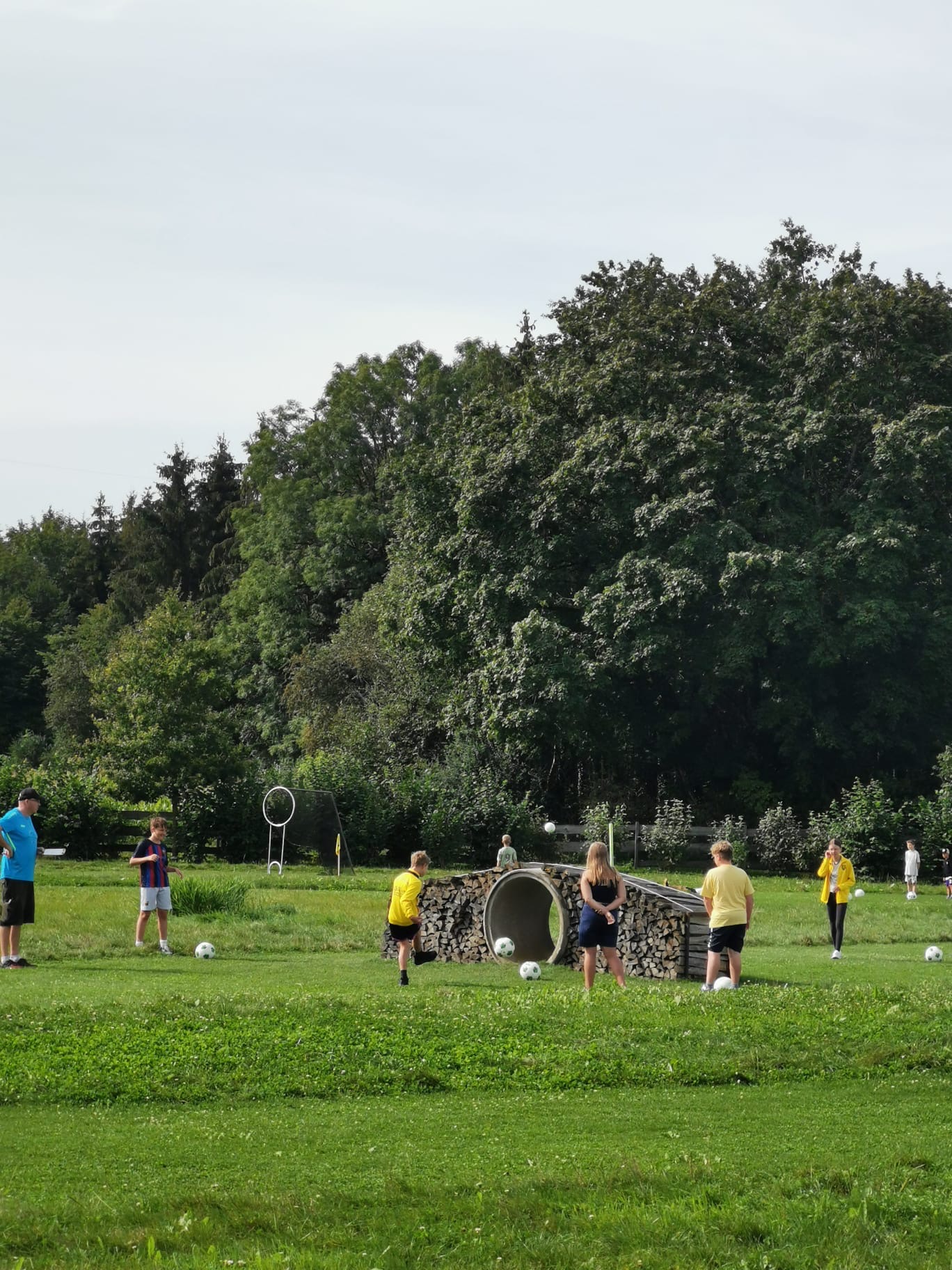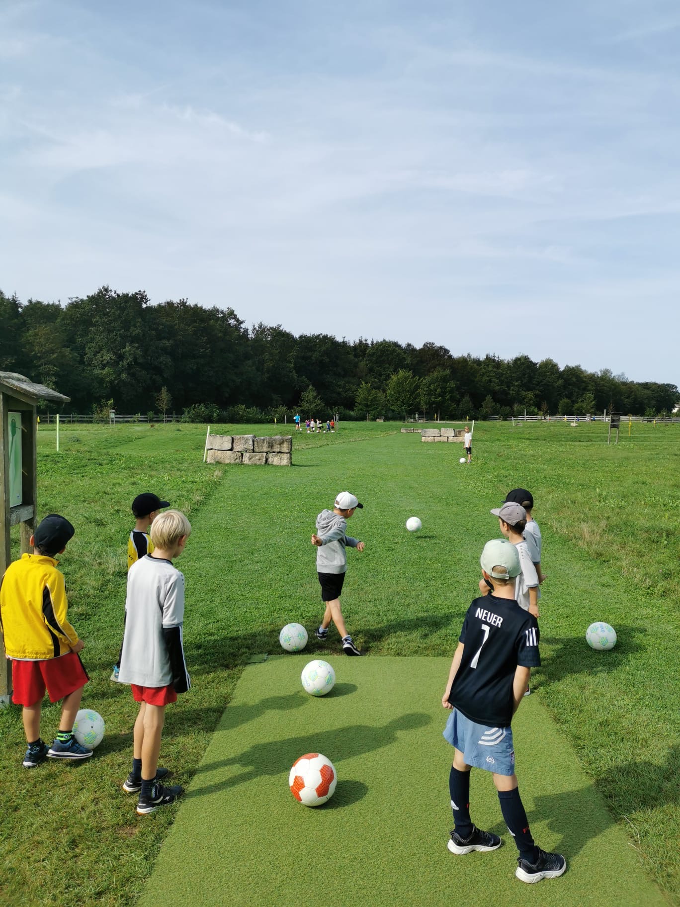 Tag 4: Am letzten Tag des Sommercamps stand ein besonderer Ausflug auf dem Programm: Die Gruppe fuhr zum Soccergolf nach Zorneding. Das Wetter war erneut herrlich, die Sonne schien, und die Kinder freuten sich auf die neue Herausforderung. Die Anreise erfolgte mit einem Reisebus, einem Vereinsbus und drei privaten Autos. Vor Ort wurden die Kinder in Gruppen von jeweils acht Kindern eingeteilt, wobei jeweils ein Trainer als Aufsicht fungierte.