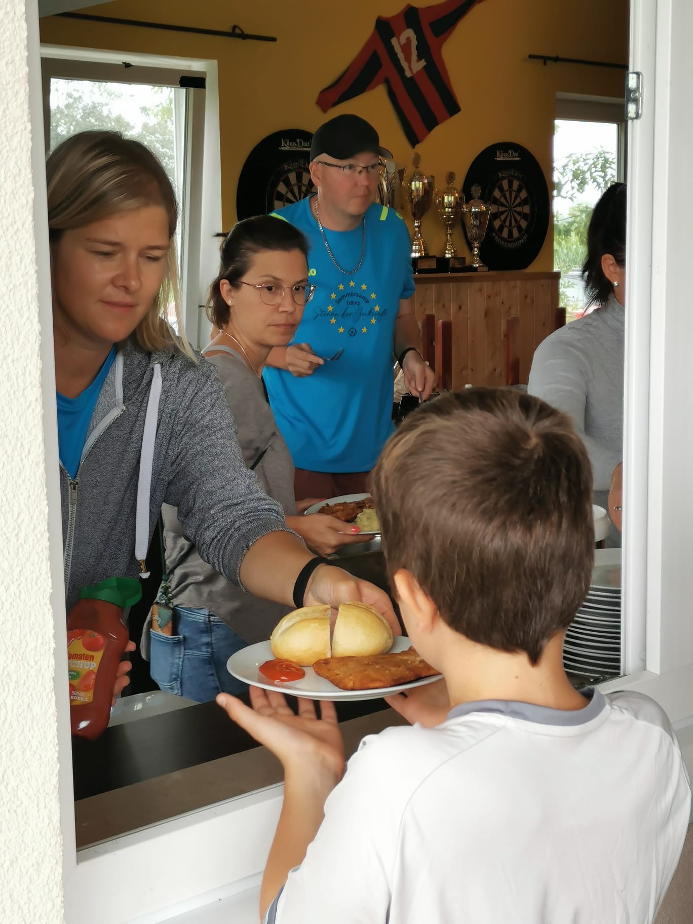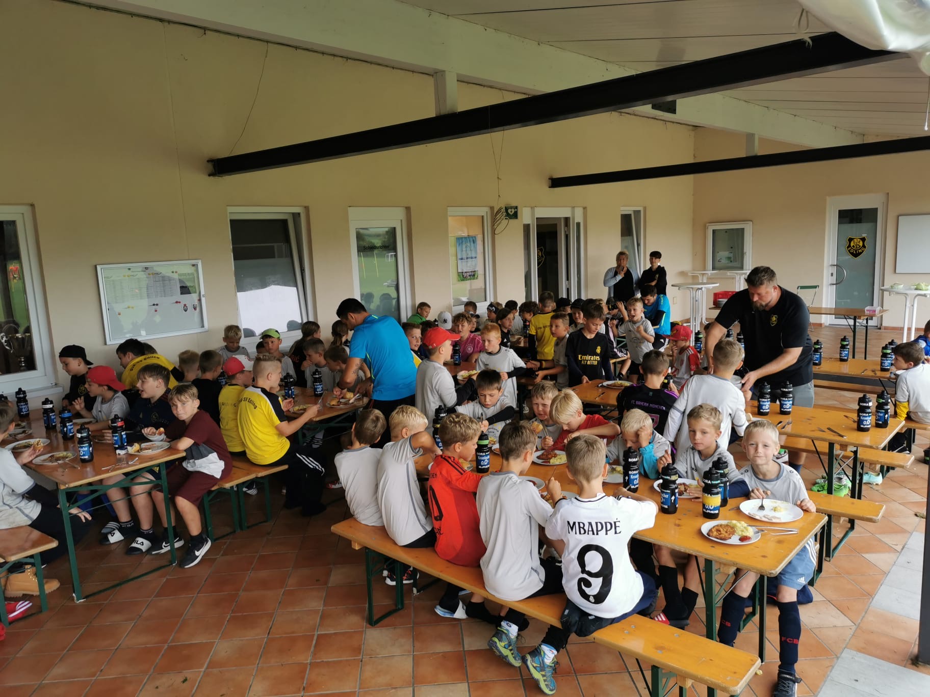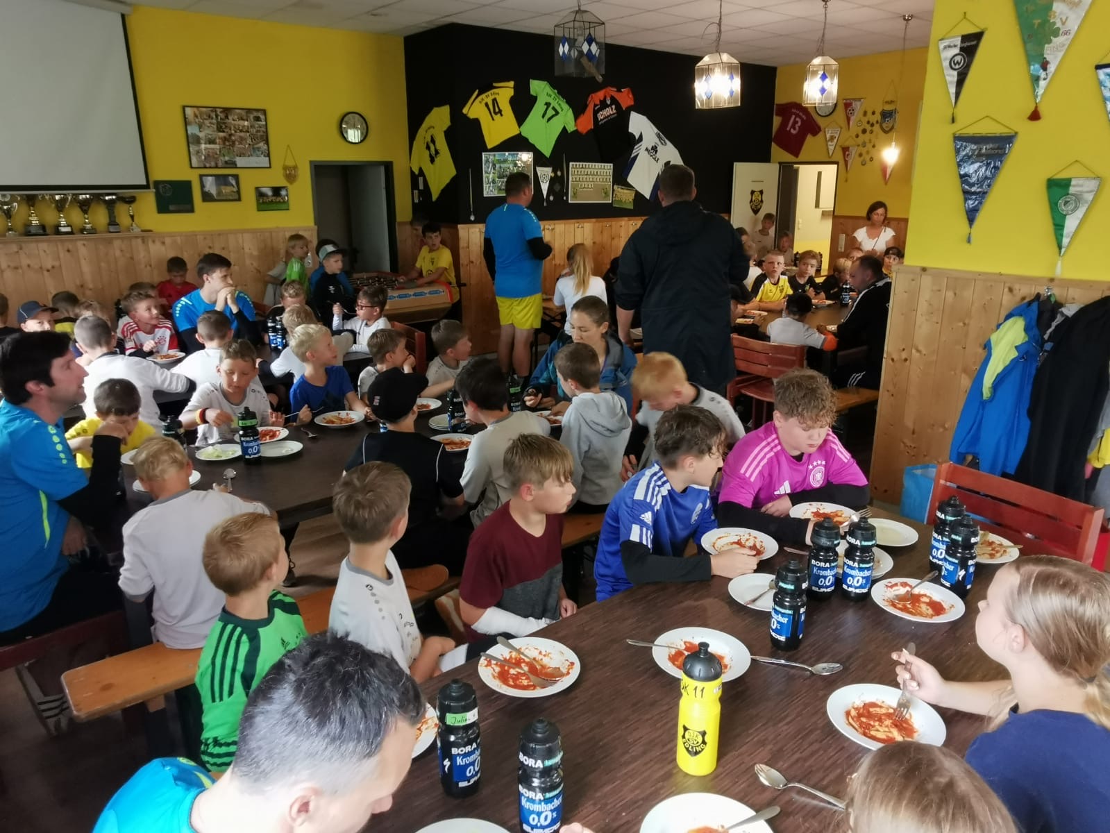Zum Mittagessen gab es Geschnetzeltes mit Spätzle und Salat, was großen Anklang fand. Am Nachmittag fanden dann zum Abschluss des Tages zwei kleine Turniere für jüngere und ältere Kinderteams statt. Eltern waren eingeladen, das Geschehen zu verfolgen, und einige nutzten die Gelegenheit, um ihre Kinder bei den Spielen anzufeuern. Die Stimmung war ausgelassen und sehr gut, und der Tag klang in einer fröhlichen Atmosphäre aus.