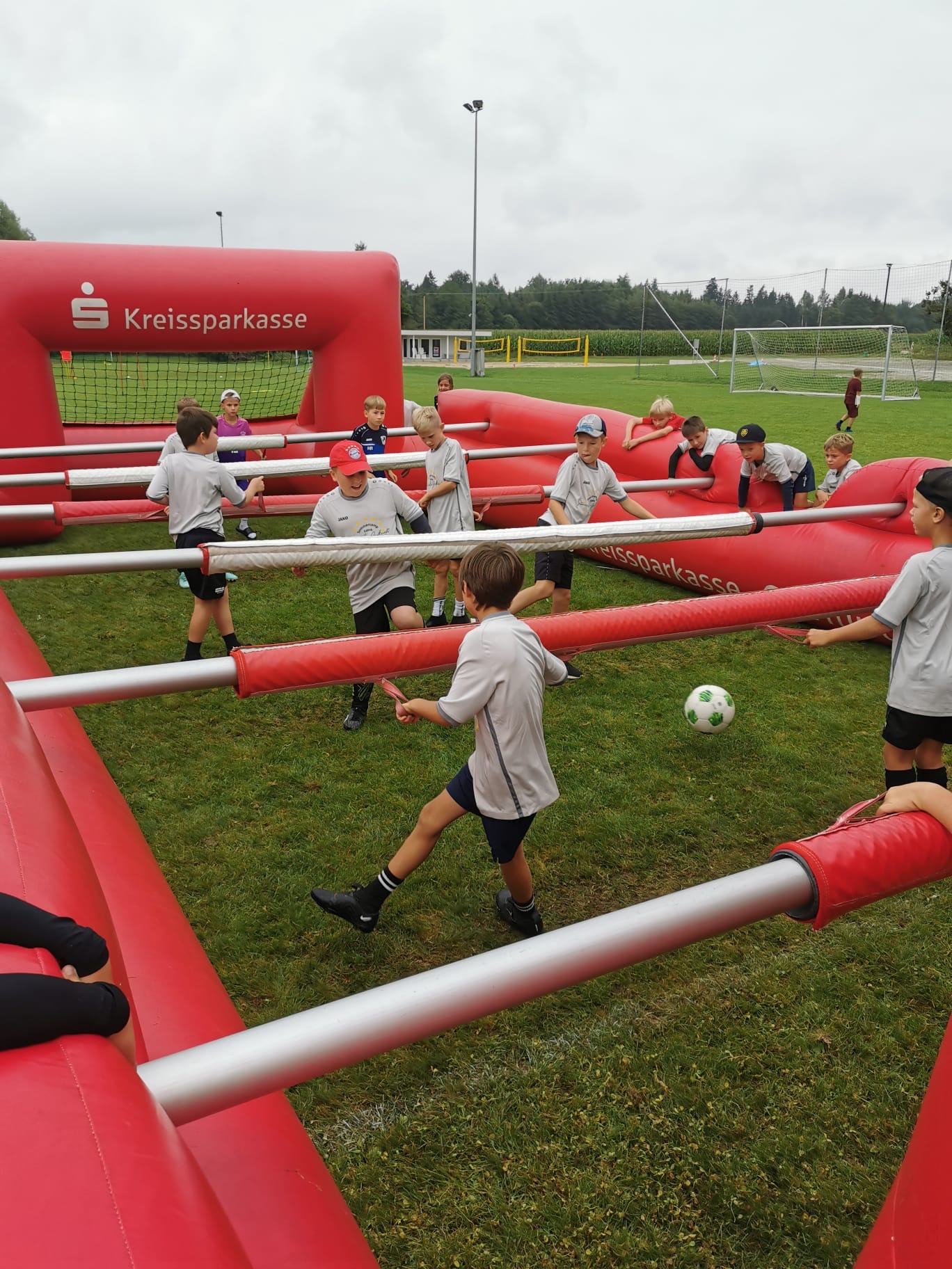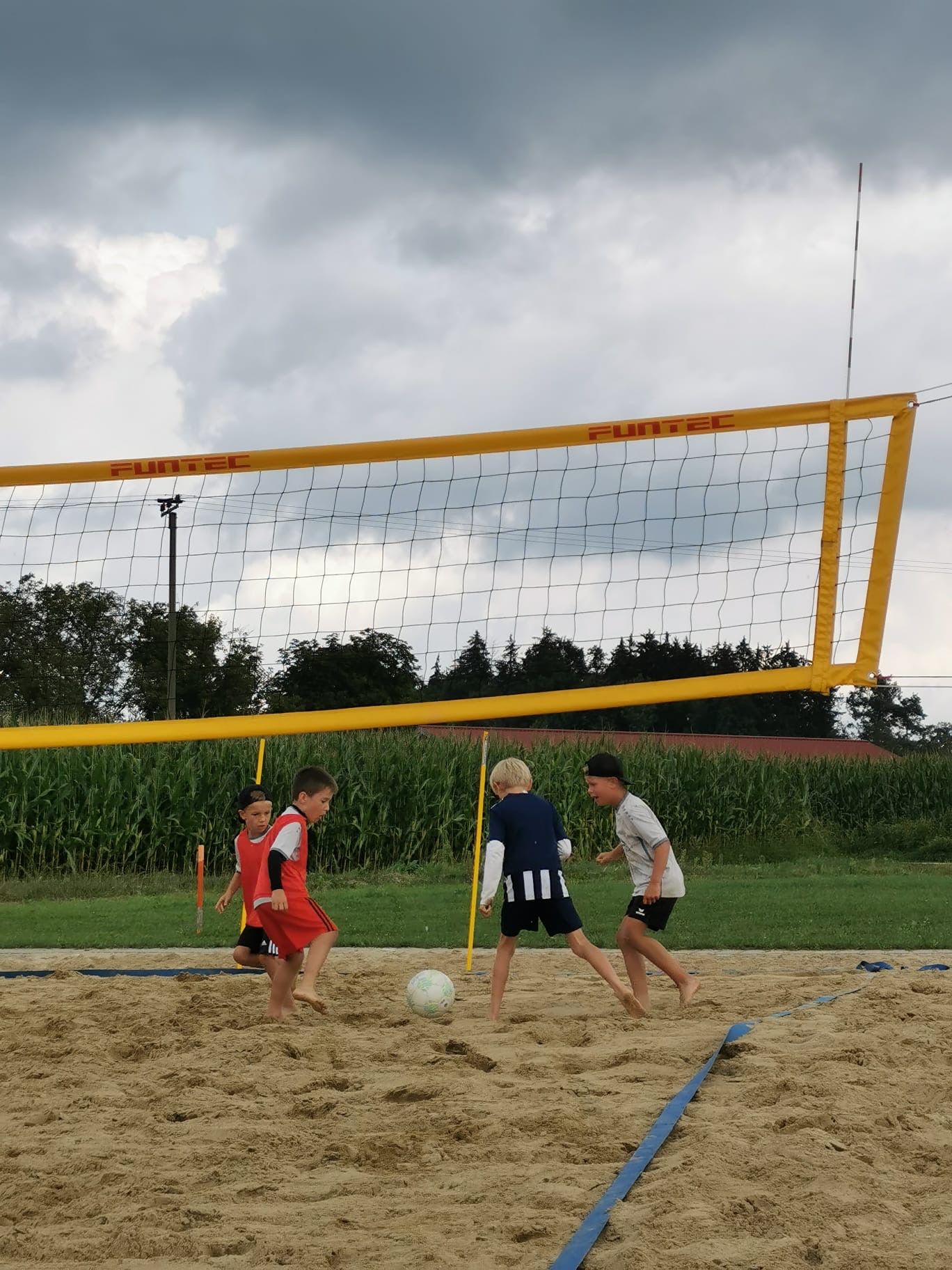 Tag 2: Das Wetter wurde etwas besser, was für noch mehr Motivation und Aktivität sorgte. Auch an diesem Tag gab es wieder zwei Trainingseinheiten, welche die Teilnehmer weiter förderten und forderten. Zusätzlich wurden verschiedene Attraktionen angeboten: Ein Menschen-Kicker, eine Riesendartscheibe und Beach-Soccer sorgten für zusätzlichen Spaß und Abwechslung.