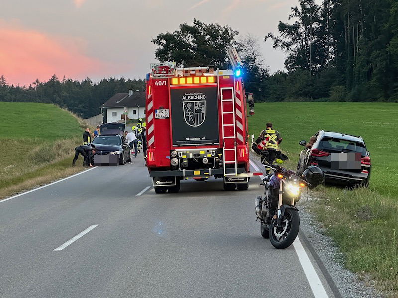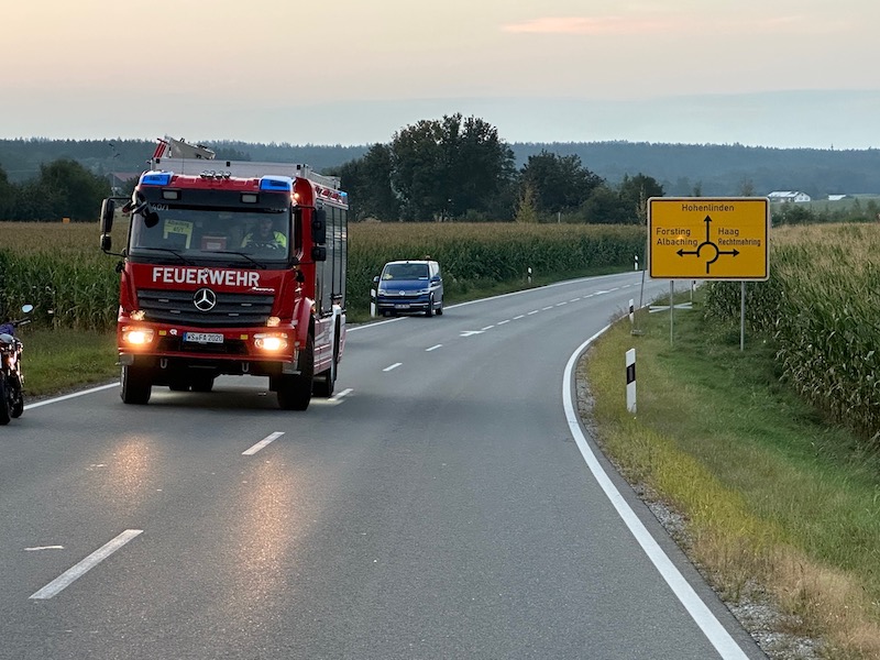Unfall am Abend bei Albaching - Feuerwehr im Einsatz