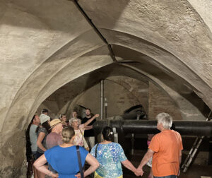 Danach ging es über einen Verbindungsgang ins östlich vom Stadttor gelegene Pensionat II, das ab Ende des 19. Jahrhunderts als Erweiterung das Spital ergänzte und früher als Fleischhaus und später unter anderem als Zeughaus fungierte. In den 1920er Jahren übernahm die Stiftung noch das daneben liegende Ferstlhaus – benannt nach einem seiner früheren Eigentümer, dem Schlossermeister Ferstl. Von 2007–2010 wurden beide Häuser – inklusive des beeindruckenden Kellergewölbes – aufwendig saniert und beherbergen heute auch wieder altersgerechte Wohnungen. Für das Gebäude des ursprünglichen Heilig-Geist-Spitals hingegen erfolgte eine partielle Sanierung in den 1970er Jahren, bevor das Imaginäre Museum hier 1978 eröffnet wurde. Im Jahr 2016 zog die Sammlung „Wasserburg aus fünf Jahrhunderten“ von Bernd Joa ein, die ebenfalls am Tag des offenen Denkmals am Nachmittag erkundet werden konnte. Mehr Infos über das „Heiliggeist-Spital mit Kirche“ im Historischen Lexikon Wasserburg unter https://www.historisches-lexikon-wasserburg.de/Heiliggeist-Spital_mit_Kirche.