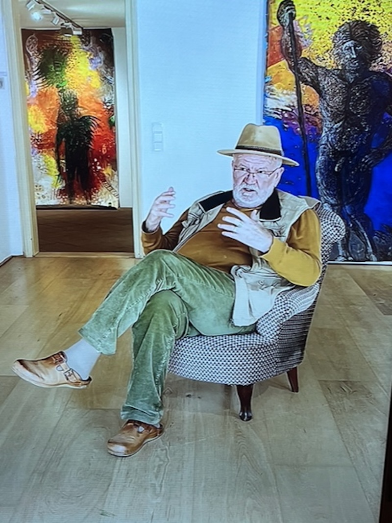Die Mystik in der Kunst dürfe nicht zu kurz kommen, führte Pytlik weiter aus. Warum in seinen Bildern die griechischen Gottheiten der Antike eine so wichtige Rolle spielten, wollten wir wissen. Džeko Hodžić hatte darauf keine Antwort, doch Andreas Pytlik wusste sie zu geben. Auch Griechenland, so erläuterte Pytlik, gehöre letztlich zum Balkan. Denn im Balkan herrschte seit den 90er Jahren des 20.Jahrhunderts große Not und letztlich herrsche diese Not auch weiterhin. Und die Götter Griechenlands seien eingeladen zu helfen, diese Not zu lindern.
