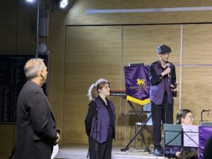 Der Keyboarder des Ensembles, der das Publikum in einem hervorragendem Deutsch begrüßte, hat eine besondere Verbindung zur Schule, da er der Enkel von Peter Holzer ist, der die Wirtschaftschule Alpenland im Jahr 1957 als Absolvent verließ und nach Australien auswanderte.