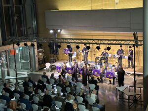 Dabei erstreckte sich die musikalische Auswahl der Schülergruppe unter der Leitung von Geoff Smith, Fachschaftsleitung der Abteilung Musik, von Kompositionen wie „Summertime“ über „Down Under“ von Men at Work bis hin zu einer Eigenkomposition von Max Finch.