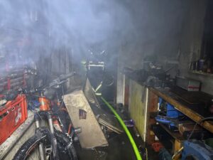 In einer Garage, die als Werkstatt diente, sei es zu einer Explosion gekommen, so die erste Notrufmitteilung. Ein Großaufgebot von Feuerwehr und Rettungsdienst ist zum Einsatzort gefahren. Schnell wurde klar, dass es sich um einen Brand mit starker Rauchentwicklung in besagter Garage handelte, wobei möglicherweise mehrere Lackspraydosen explodiert waren.