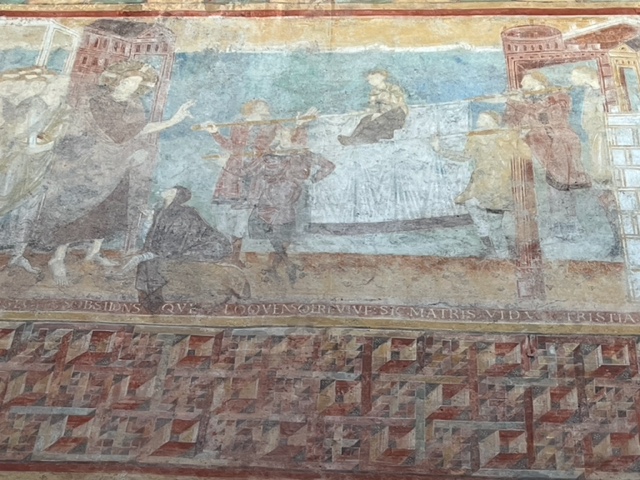 Neben der Klosterkirche besuchte die Gruppe auch das Museum und die Kirche St. Georg. Es handelt sich hier ein spätkarolingisches und ottonisches Kirchengebäude auf der Insel Reichenau. Die Basilika. wurde Ende des 9. Jahrhunderts gebaut und soll Knochen des heiligen Georg beherbergen. Mittelalterliche Fresken konnten ebenso bewundert werden wie die schlichte romanische Bauweise der Kirche.