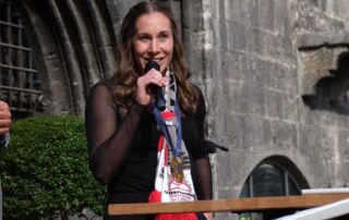 Fans feierten gestern vor dem Wasserburger Rathaus die Goldmedaillen-Gewinnerin im Basketball