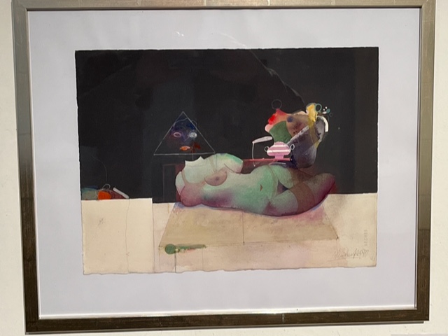 Und er wies auch darauf hin, dass „Form und Farbe“ darüber hinaus ein großes Spektrum an künstlerischer Vielfalt zu bieten in der Lage sei. Figürliches, also Aktbilder und Porträts, kombiniere Reichert immer wieder mit Ornamenten, Zahlen und geometrischen Figuren. In vielen seiner Darstellungen lasse sich eine bisweilen kryptische Symbolik wahrnehmen, deren Interpretation dann wiederum dem Betrachter überlassen bleibe.