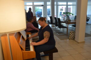 „In unseren neuen Räumen gibt es ein Trampolin, einen Ruheraum mit Licht für Powernaps und ein Wohnzimmer“, berichtet Mirjam Bock. Das große Highlight stellt aber das Klavier, welches von der KuRa Kultur gGmbH Stiftung von Christopher Rakau zur Verfügung gestellt wurde, dar. Ein Klavier, das Generationen verbindet und die Vision des „offenen Hauses“ verwirklicht. Mitarbeiter, aber auch musikalische Bewohner, können hier spielen und alle hören gerne zu, wenn die Musik im ganzen Haus erklingt. Auch Spaziergänger vor der Tür bleiben stehen und genießen die Klänge.