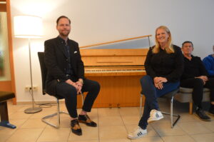 PR – Aus den neuen Büroräumen des Pflegeservice Bock in der Ledererzeile 31a erklingen Töne des „Flohwalzers“ – Bewohner und Mitarbeiter hören gespannt zu. Keine einmalige Aktion, denn Geschäftsführerin Mirjam Bock (Bild oben mit Christopher Rakau) setzt auf ein Konzept, welches vom starren Büroalltag abweichen und einen Mehrwert für ihre Angestellten bieten soll.