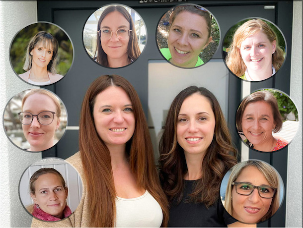 Foto, Mitte: Sarah Zaffran (1. Vorsitzende) und Magdalena Luleva (2. Vorsitzende); außen von links: Andrea Sonntag, Sabine Hofinger, Zsuzsa Papp, Anna Durmeier, Anna Hangl, Birgit Jais, Regina Keller und Jessica Aschenbrenner.