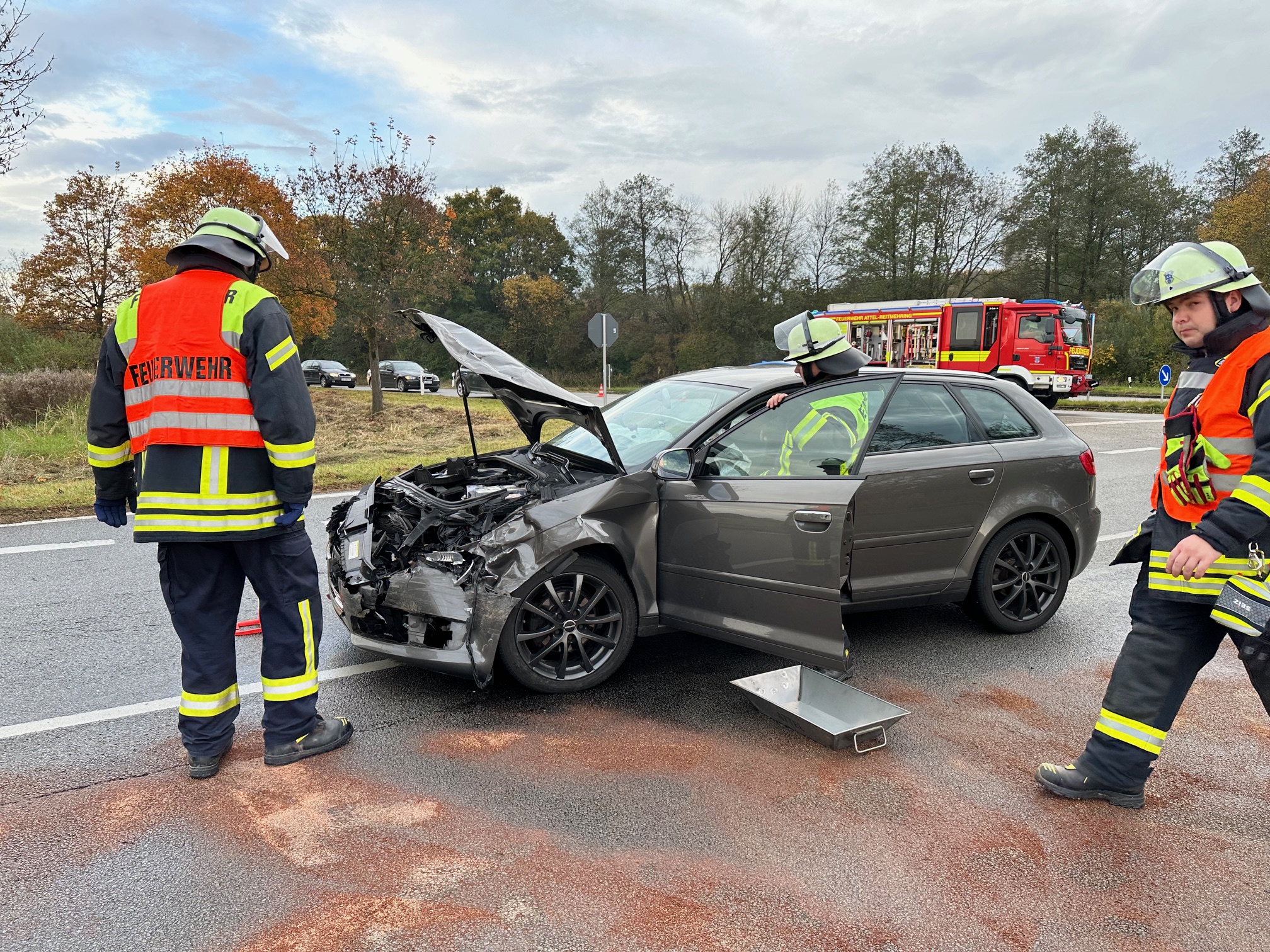 Alarm für die Feuerwehr Attel-Reitmehring: Gegen 16.40 Uhr sind auf der B15 bei Gabersee an der Abzweigung nach Wasserburg zwei Pkw zusammengeprallt. Es gab drei Leichtverletzte. Im Einsatz waren auch der Rettungsdienst und die Polizei. Fotos: Georg Barth