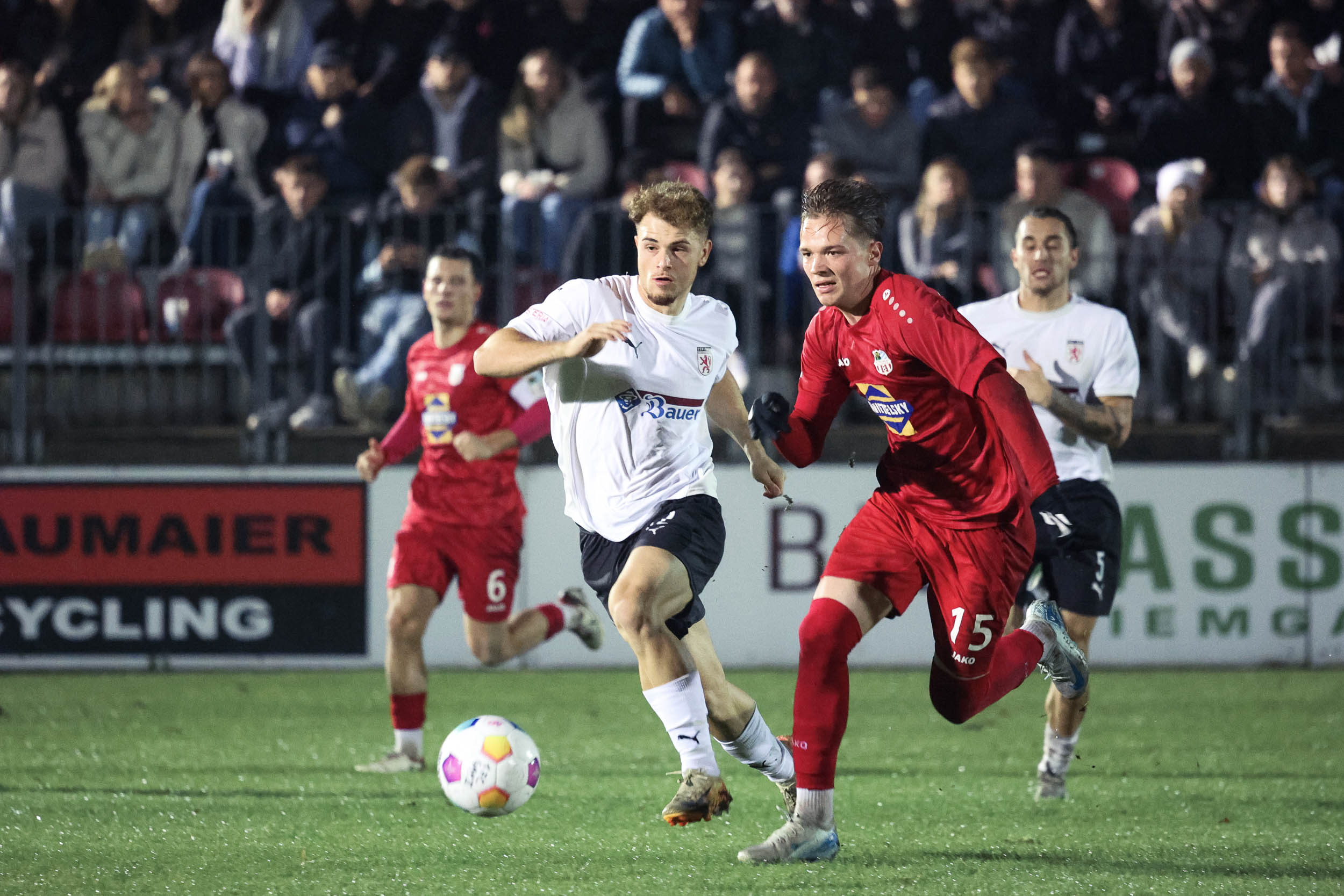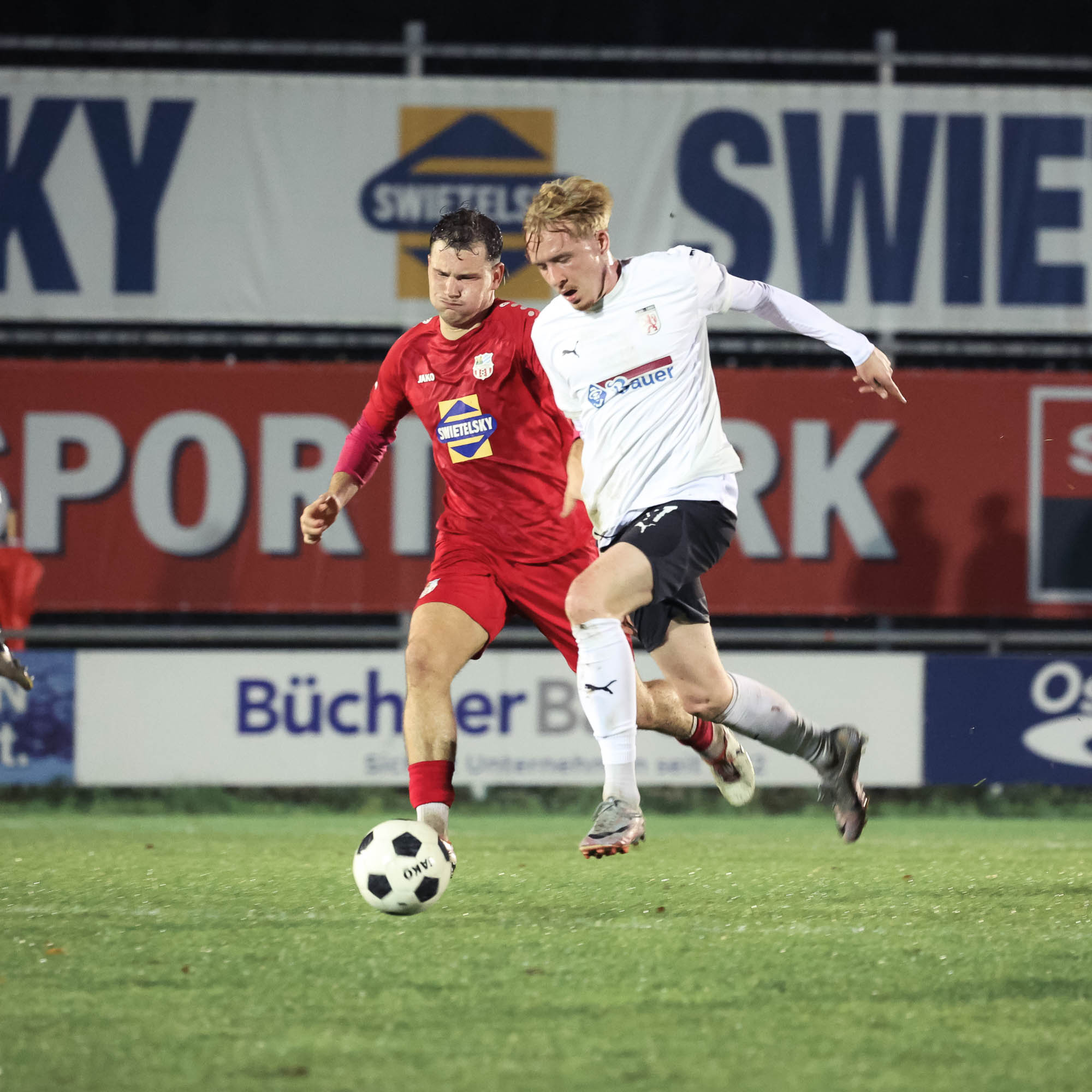 Durch einen Doppelschlag in der 20. und 25. Minute holten die Wasserburger Löwen gestern Abend einen Dreier beim SB Chiemgau-Traunstein.Torschützen waren ThomasVoglmaier und Dominik Brich (Foulelfmeter). Wasserburg bleibt damit am Spitzenduo Geretsried und Schwaig dran. Spielbericht folgt. Unser Fotograf Christian Mühlhofer hat die Partie gestern in Bildern festgehalten:
