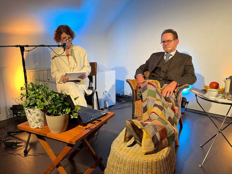 Anlass zu „Talk mit Kafka“ war dessen 100. Todestag in diesem Jahr. Darin interviewt eine fiktive Journalistin (Hannah Zitzmann) den bereits schwer an Tuberkulose erkrankten und in einem Sanatorium befindlichen Franz Kafka (Andreas Belwe) über sein Leben.