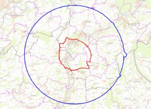 Die Überwachungszone im Landkreis Mühldorf umfasst folgende Gebiete: Teile der Gemeinden Oberneukirchen, Polling und Taufkirchen, die innerhalb des Kreises mit einem Radius von zehn Kilometern liegen, dessen Mittelpunkt die GPS-Koordinaten 48° 6`37.93„ N, 12°