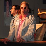 Als dann auch noch Mortimers verschollen geglaubter Bruder Jonathan, außergewöhnlich gut dargestellt von Bernhard Seidinger, die Bühne betritt, vervollkommnet sich die Groteske der Situation: Jonathan hat einen Oberlippenbart und zeigt durch seine Sprache, dass er an jenen Mann erinnern soll und will, der im Stück dann auch mehrfach „der Wahnsinnige aus Braunau“ genannt wird, auch dies ein Hinweis auf die Zeiten der unbarmherzigen „Behaglichkeit“ in den dreißiger und vierziger Jahren des vergangenen Jahrhunderts bei uns in Deutschland. Jonathan oder Johnny, wie er immer wieder genannt wird, ist beim Mord dann auch ehrgeizig: „Ich brauch nur einen mehr!“ ruft er in den Saal und er meint einen Toten. Er will, was das Morden betrifft, der Größte sein, ganz so, als ob er sich an seinem verbrecherischen Vorbild orientieren möchte.
