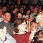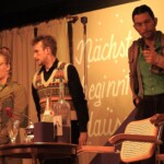 Als der Schluss-Vorhang bei dieser Première fiel, konnte man aber auch ein bisschen Wehmut im Saal spüren: Christian Huber (Bildmitte, dunkler Pulli) , der seit 30 Jahren die Regie bei den Theateraufführungen des Theater- und Musikvereins Albaching inne hat, wird aufhören. Huber, der in wenigen Tagen seinen 60. Geburtstag feiert, kann auf viele erfolgreiche Theaterinszenierungen in Albaching zurückblicken. Er hat sich auch an große Theaterstücke herangewagt, wie „Wallensteins Tod“ von Schiller oder „Romulus der Große“ von Dürrenmatt. Auch Shakespeare gehörte mit „Viel Lärm um Nichts“ zum Repertoire dieser außergewöhnlich ansprechend spielenden Laienspielgruppe. Huber, der beim Schlussapplaus sich gerne hinter den Vorhängen versteckt, hat in den vergangenen 30 Jahren viel getan für das Theaterspiel in Albaching und das Publikum zeugte es mit dem, was es am besten kann: Mit einem lang anhaltenden, nicht enden wollenden Applaus für dieses außergewöhnlich große Engagement.